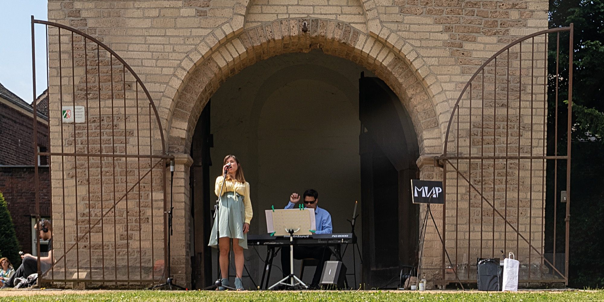 Der vierstöckige Kirchturm aus Tuffstein stammt aus der Anfangszeit des 13. Jahrhunderts und ist das einzige Überbleibsel der 1891 abgebrannten St. Mauritius-Kirche. Seit 1959 dient er als Gedenkstätte für die Kriegsopfer beider Weltkriege. Der Künstler Joseph Beuys gestaltete das Eichenholztor, auf dem die Namen von 222 gefallenen Büdericher Kriegstoten eingemeißelt sind. Auch der Innenraum wurde von Beuys mit seinem aus Eichenholz geschnitzten Symbol der Auferstehung und Erlösung gestaltet.